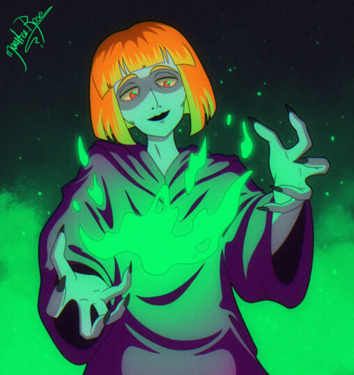 Ilustracja związana z moim komiksem DRAK. Na rysunku widac mą autorską postać Chię używającą swojej mocy, którą jest magia ognia. Chia jest demonem. Wykonano w Procreate.
